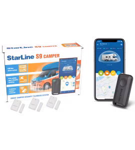 StarLine S9 CAMPER:   4G LTE 2xSIM, GPS+GLONASS-antenn, 2 Bluetooth-taggar , Bluetooth Smart Authorization, StarLine Mobile App, Blackbox, 3CAN-FD+4LIN , SuperSlave, Pin-to-Drive, iCAN-motorblock, fjärrstart och iKey-data-immo-bypass, säker Keyless-Go, smart OBDII-diagnostik, inbyggd stöt-/lutnings-/rörelsesensor, temperatursensor, summer, Webasto/Eberspächer-kontroll, handsfree, anti-kapning, microUSB, siren, LED-parkeringsknapp, 3x MS-06BT-W trådlösa Bluetooth-reed-/lutnings-/temperatursensorer för att skydda garageportar, fönster och extra utrustning som cyklar, skotrar .... upp till 12x MS-06BT kan programmeras